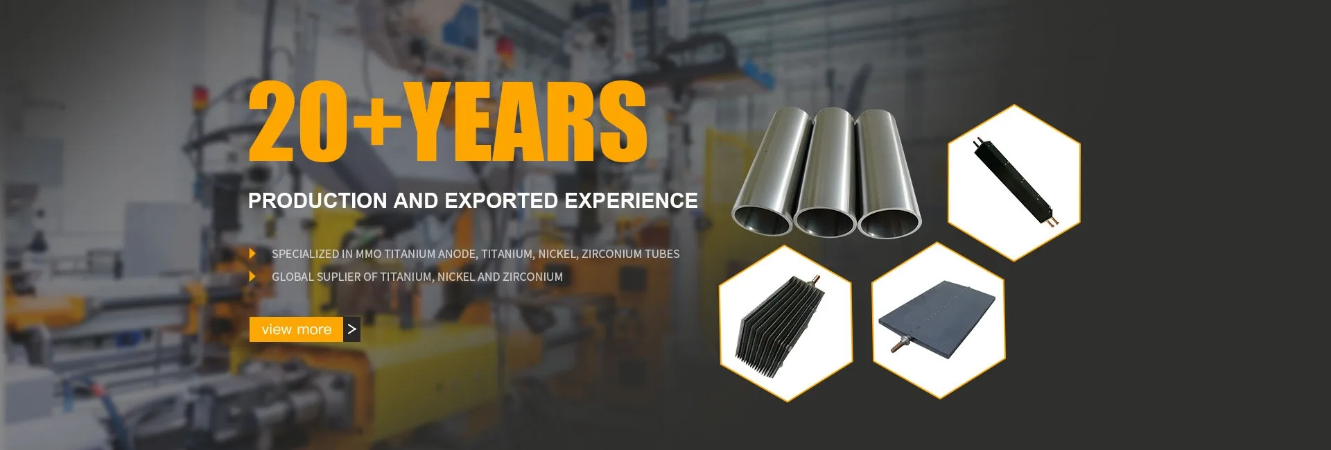 Our main products are MMO Titanium anode, Titanium tube ,Ti plate, rods and bars, wires, and Nickel tube, Nickel plate, Nickel rod & wire, Titanium clad materials, MMO ribbons, and PbO2 coated Ti electrode, Pt coated Ti anode and other Ti & Ni products; which are widely used in the fields of aeronautics, spaceflight, metallurgy, petroleum, Power plants, tourism, sport, chemical engineering, light industry, environment protection, and ocean industry. Most of our products are exported to Korea, Japan, Germany, Russia, U.S.A, U.K, Singapore, India, Taiwan and Israel etc more than 30 countries and areas.